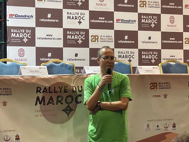 Pour sa part ; le jeune Omar Ben Hayoun, pilote marocain a déclaré à la Presse : « Je participe aux rallyes sahariens et cette année, j’ai l’honneur de participer pour la première fois au Rallye du Maroc, qui est une manche du championnat du monde de rallye-raid au Maroc. C’est un grand honneur et une opportunité énorme pour moi. Je remercie toutes les personnes qui contribuent à notre présence ici, notamment les Marocains, et nous essayons de les représenter de la meilleure façon possible. Merci également à tous les organisateurs de courses automobiles. »
