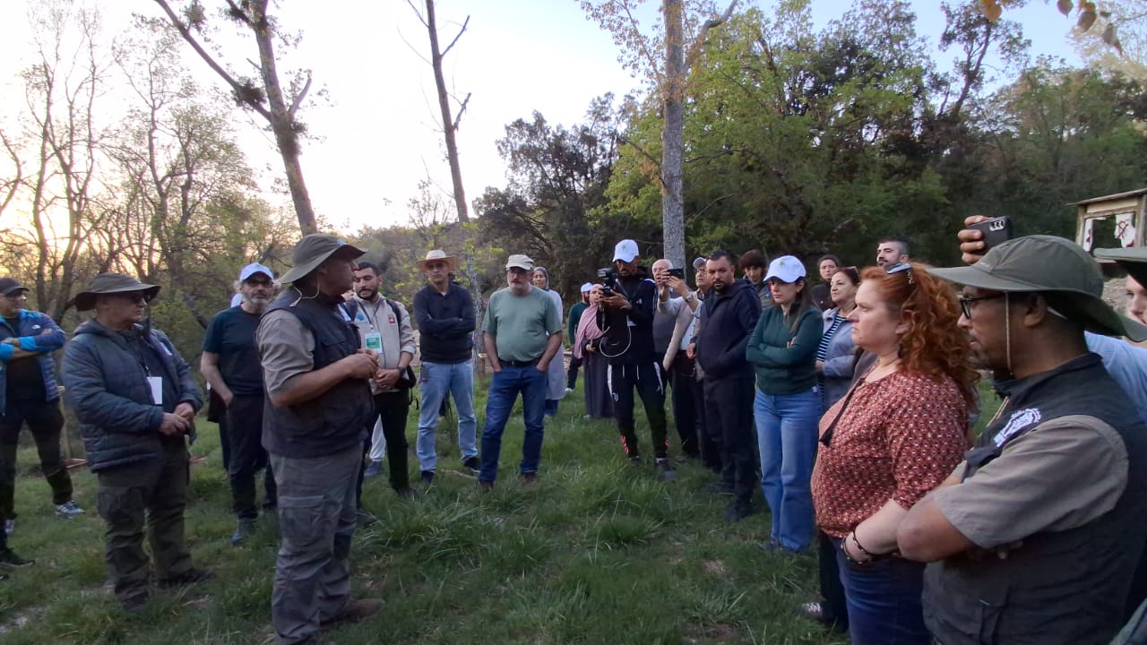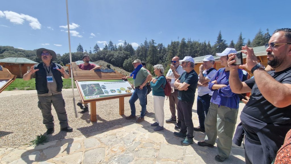 Deuxième station : la Maison de la Cédraie. Véritable centre d’interprétation, elle présente « toutes ses composantes humaines, floristiques, phonétiques », rappelle Dr Marzouk. Les délégations ont découvert l’histoire du cèdre de l’Atlas, Cedrus atlantica, espèce emblématique classée par l’UICN, et les savoir-faire locaux liés à la forêt. La Maison sert aussi de plateforme de sensibilisation pour les écoles et les visiteurs du Parc National d’Ifrane.