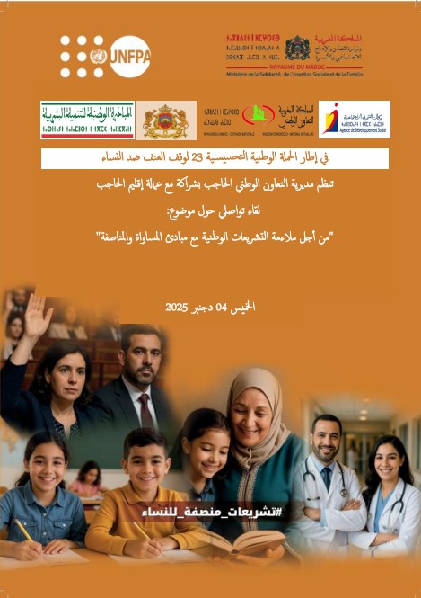 El Hajeb, 4 décembre 2025 – La Direction Provinciale de la l’entraide nationale d’El Hajeb, en partenariat avec la province d’El Hajeb, organise une rencontre de sensibilisation sur le thème « Pour une harmonisation des législations nationales avec les principes d’égalité et de parité ».